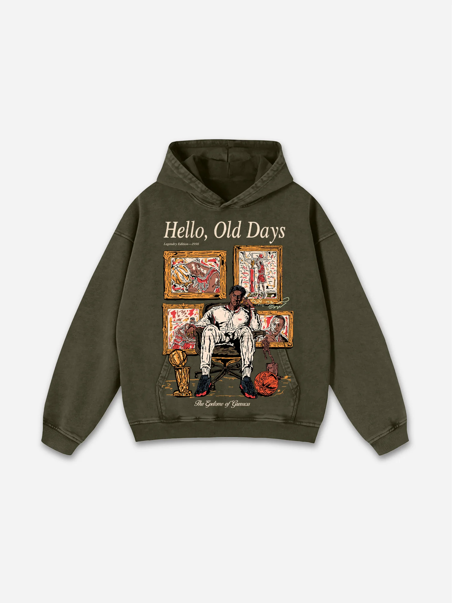 Buy your Vintage Old Times Graphic Acid Washed Oversized Hoodie Army Green now before it sells out. Limited stock available.